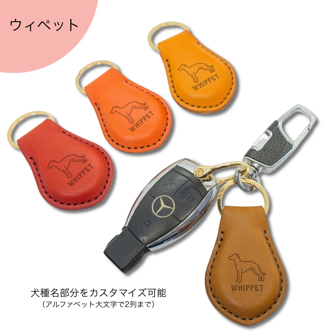 【ウィペット】ぷっくりレザーキーホルダー|栃木レザー|名入れ可|送料無料