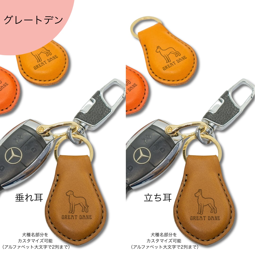 【グレートデン】ぷっくりレザーキーホルダー|栃木レザー|名入れ可|送料無料