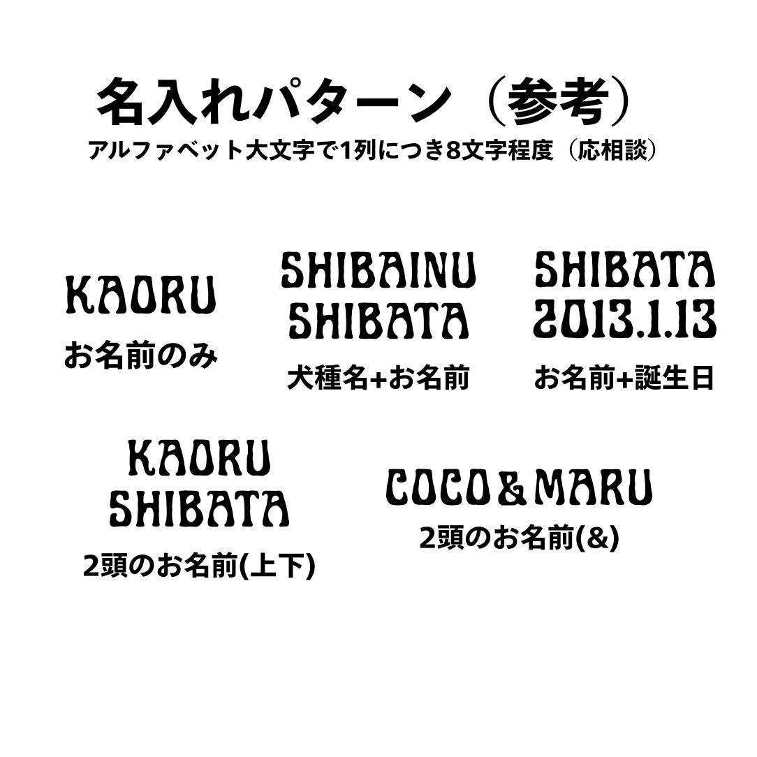 愛犬のお名前や記念日など、アルファベット大文字で2列まで刻印可能です。