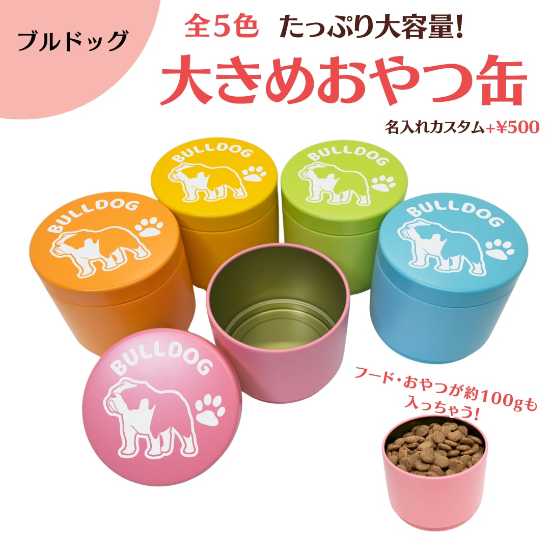 【ブルドッグ】大きめおやつ缶|密封性抜群|名入れ可|73犬種