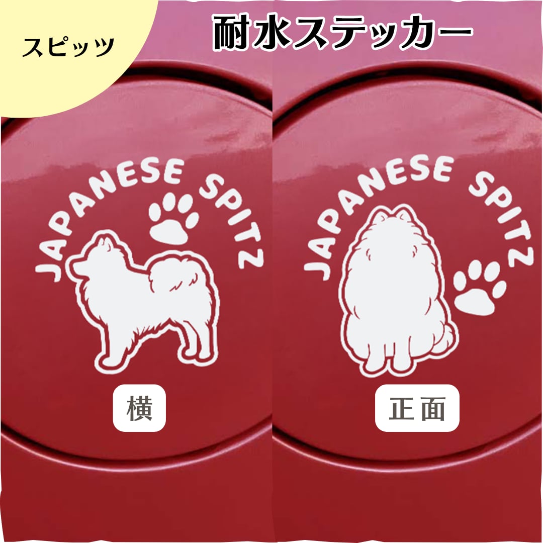 【スピッツ】耐水ステッカー|犬種シルエット|名入れ可|送料無料