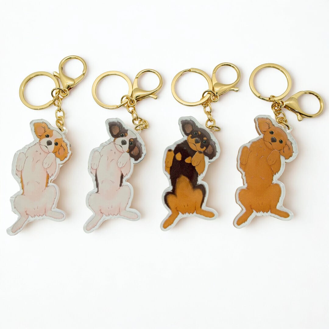 思わず「かわいい!」と声が出る、へそ天ポーズのアクリルキーホルダーです。
