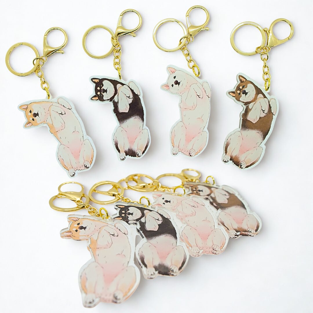 【柴犬】へそ天アクリルキーホルダー|全4色|手描きイラスト|送料無料