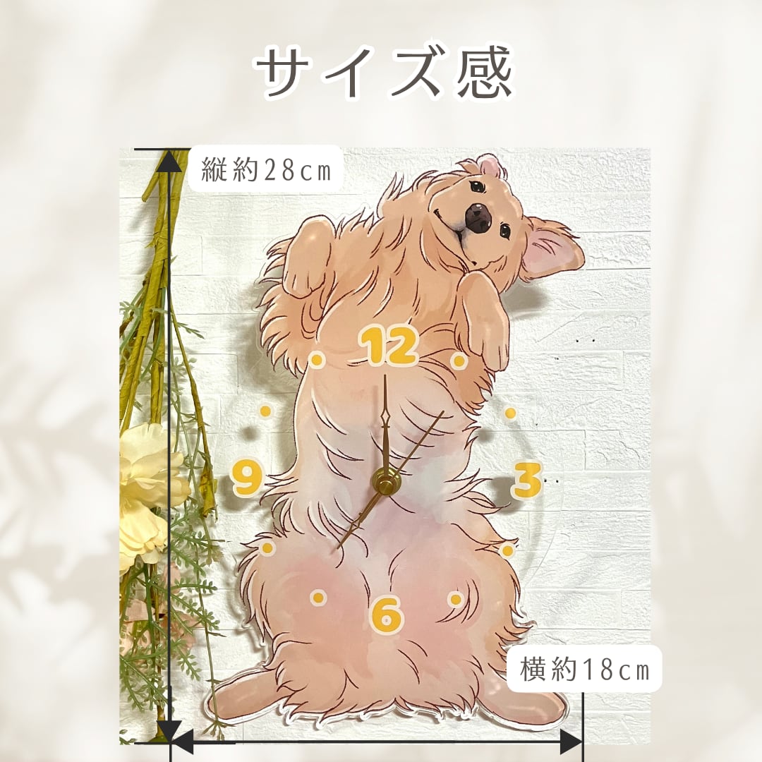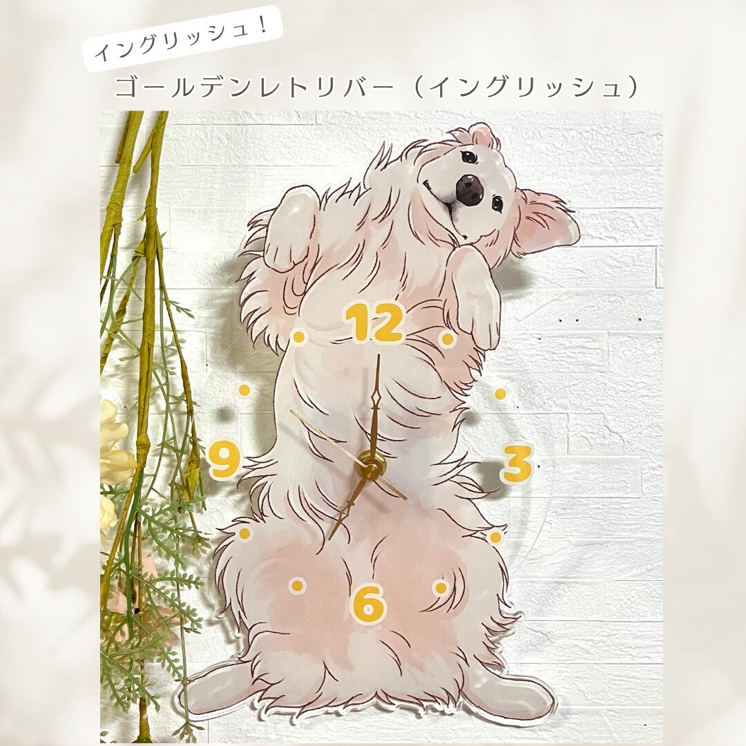 【ゴールデンレトリバー】アクリル壁掛け時計|全3タイプ|手描きイラスト|送料無料