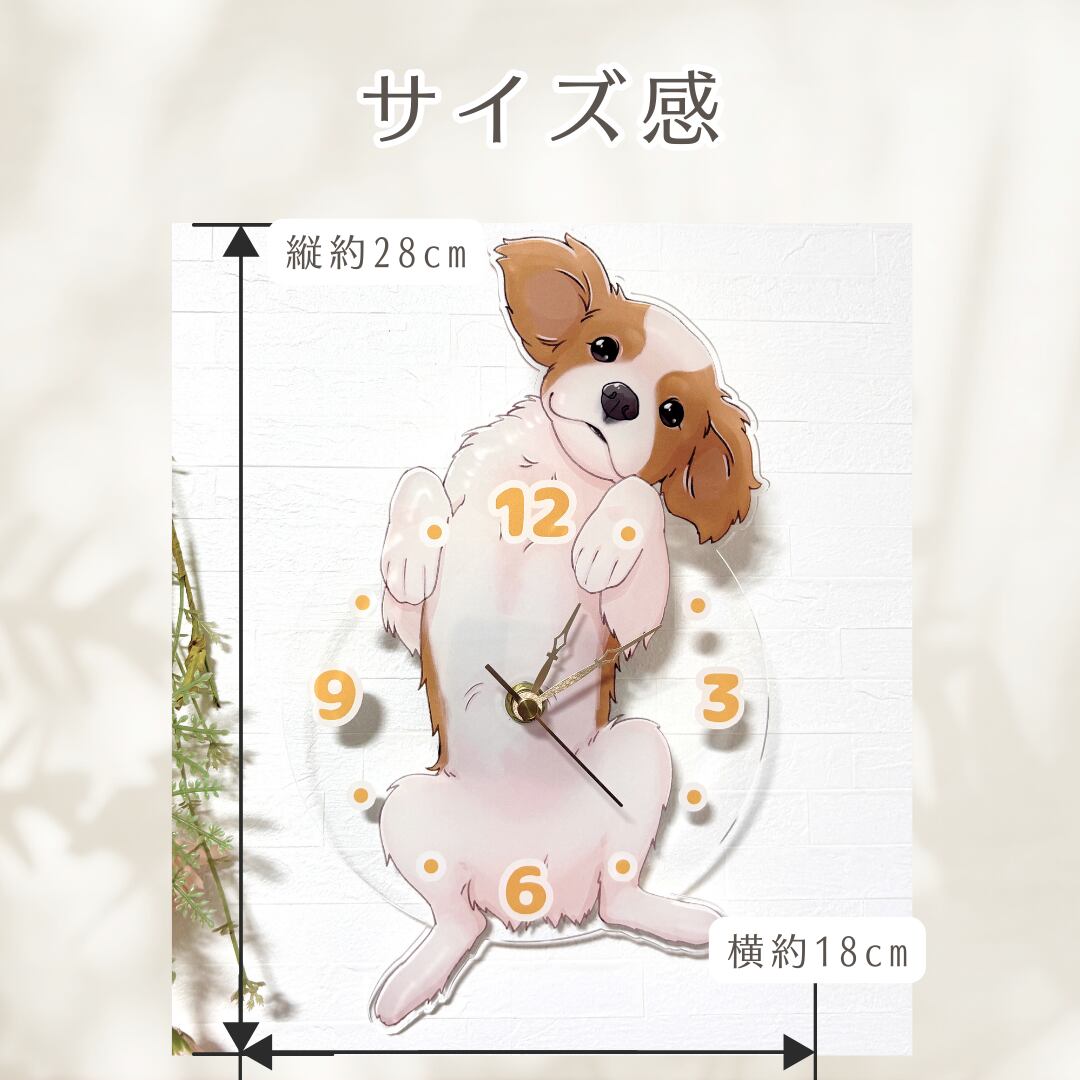 【キャバリア】アクリル壁掛け時計|全4色|手描きイラスト|送料無料